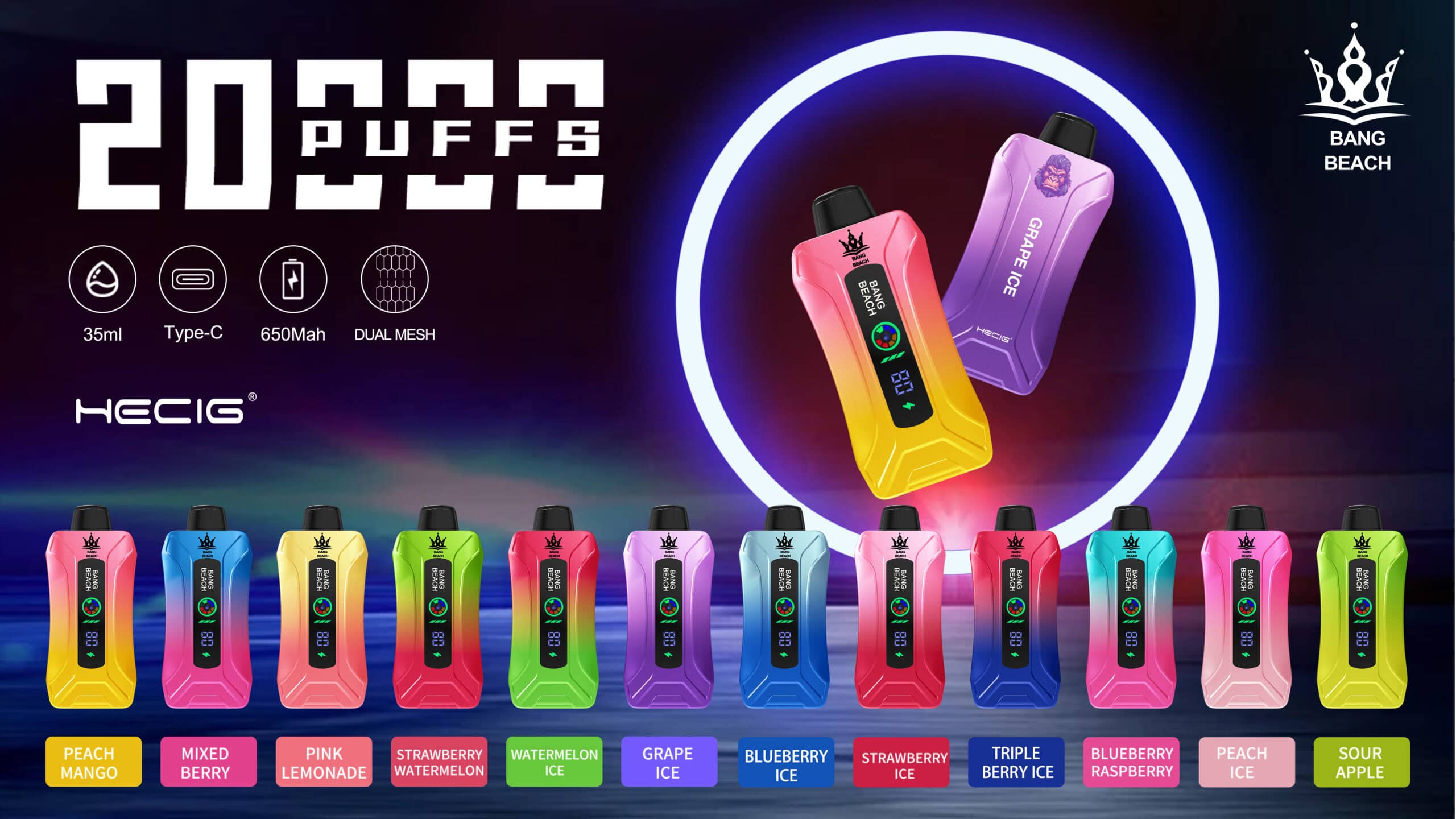 Bang Beach 20000 Puffs Double Warehouse Disposable Vape Pod, an innovative and high-capacity vaping device designed to offer an unparalleled vaping experience. With a remarkable 20,000 puffs, this vape pod is perfect for those who value longevity and convenience.