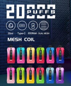 Equipped with a robust 650mAh rechargeable battery, the Bang Beach 20000 ensures consistent performance. The Type-C charging port allows for fast and efficient recharging, minimizing downtime. The advanced 1.0 ohm mesh coil guarantees smooth and rich vapor production, enhancing the flavor and consistency of every puff.