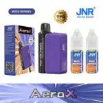 JNR AeroX 32000 Puff 32k vape 850mAh rechargeable pod vape for up to 32,000 puffs (≈2 bottles). Features refillable pods, side fill, battery screen, 1.1Ω Dual Mesh Coils for flavor, MTL draw, 0/2/5% nicotine. 1TPD Certified. USB-C Charging
