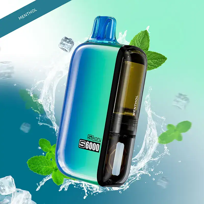 SKE Sikary S6000 Disposable Vape Kit: Enjoy up to 6000 puffs! Rechargeable 800mAh battery, pre-filled 10ml 20mg nic salt, premium mesh coil & 15 flavors. Convenient, long-lasting MTL vaping. (Type-C cable sold separately).