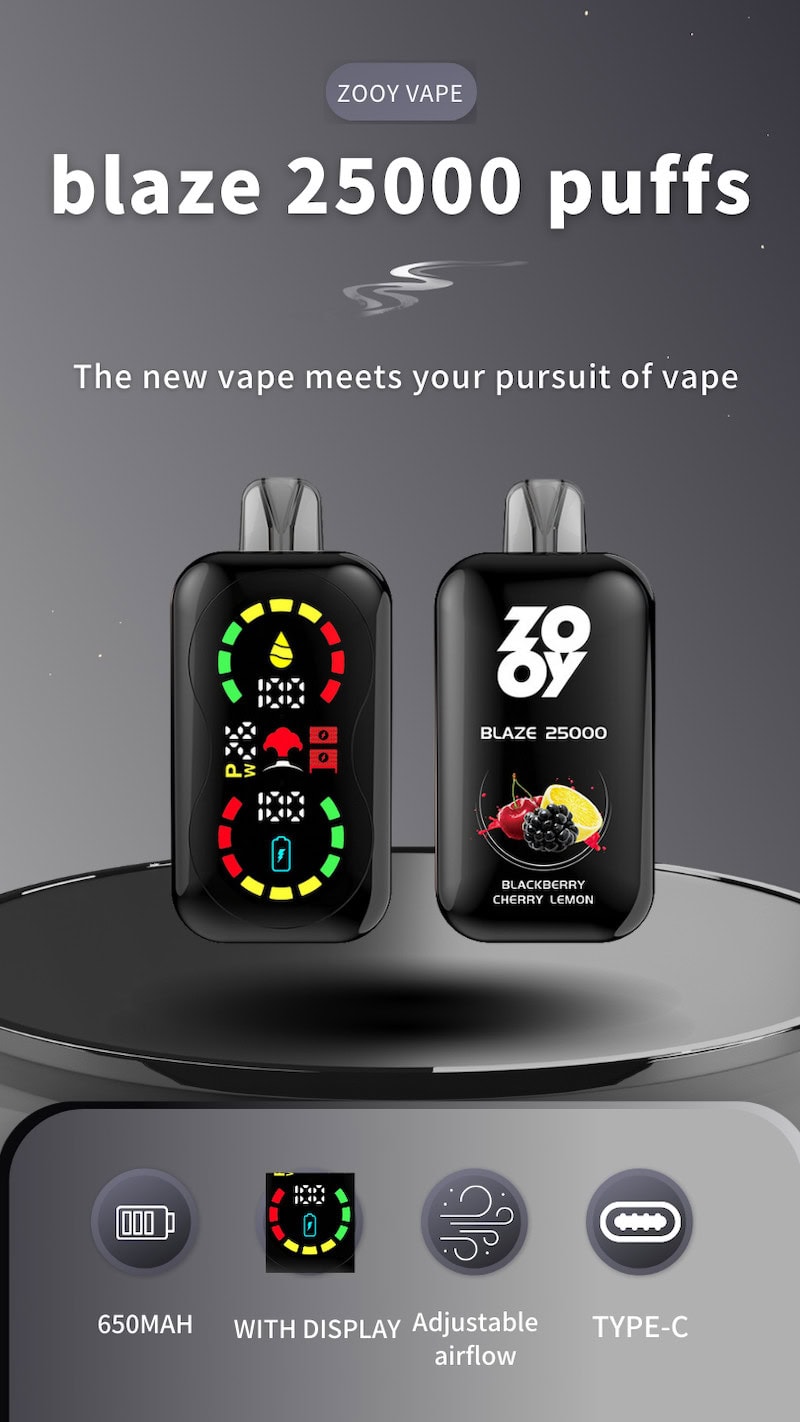 ZOOY BLAZE 25000 Puffs Disposable Vape – Power meets precision with dual mesh coils, adjustable airflow & child lock. Features a full-screen display