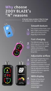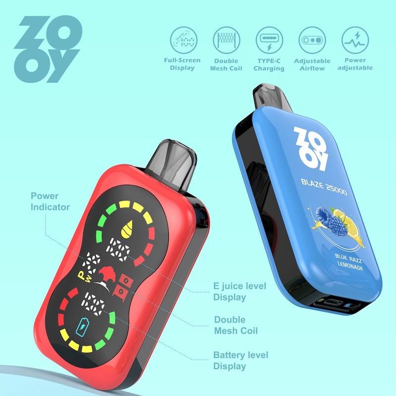 ZOOY BLAZEN 25k : full-scream display double mesh coipower adjustable 20mg 30 50mg nic salt/ mesh coil 650mah Built-in Smart Display Screen TYPE-C Rechargeable Adjustable Airflow