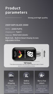 Be the first to review “ZOOY BLAZEN 25k PUFF MOQ 10pcs disposable vapes full scream display double mesh coil puff 25k vaper” Cancel reply